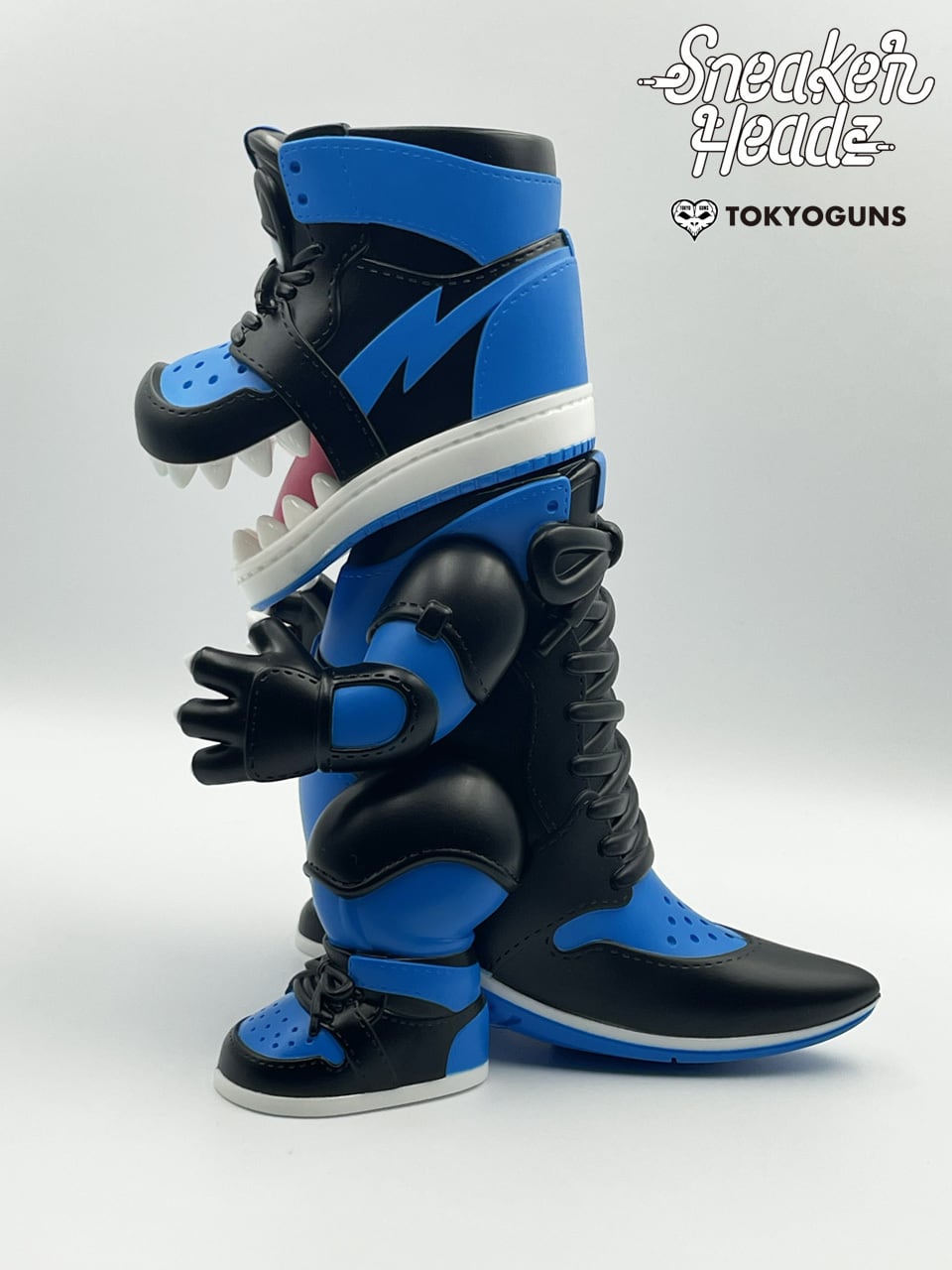「SneakerHeadz」は「スニーカー頭(ヘッド)」をコンセプトにしたTOKYOGUNSのオリジナルブランド。今回新ソフビとして頭がスニーカーの怪獣「怪獣スニーカーヘッド」が登場。手足が稼働する怪獣サイズのポップなフォルムととぼけた表情が特徴的です。